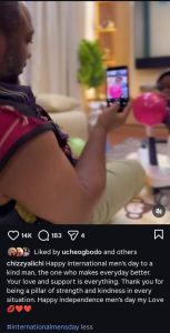 “Happy International Men’s Day to a kind man, the one who makes every day better. Your love and support is everything. Thank you for being a pillar of strength and kindness in every situation. Happy International Men’s Day, my Love”.
