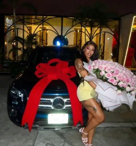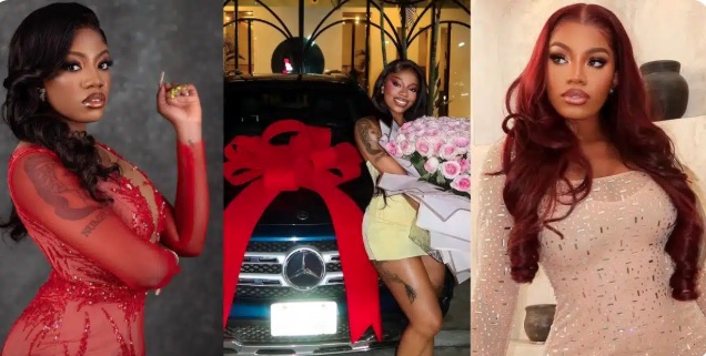 The BBNaija star took to Instagram to share photos and videos of her newly acquired Mercede-Benz gift.