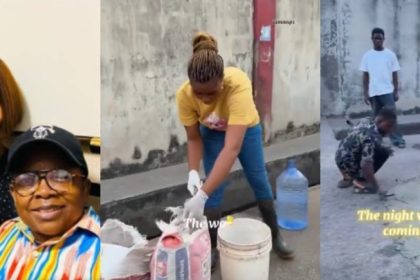 “Did She Get Permission?”- Nigerians React As Aki’s Wife Repairs Damaged Ikeja Road