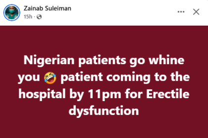 Nigerian doctor reacts after a patient came to the hospital at 11pm for erectile dysfunction
