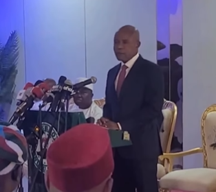 Enugu state governor, Peter Mbah officially defects to APC; his supporters chant ‘On your mandate we shall Stand’