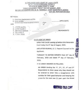 A Magistrate Court sitting in Ikeja, Lagos State, has issued a restraining order barring Baba Mohbad, Bukky Jesse, Yomi Fabiyi, Larry Omodia, and Adewale Mariam from making any public comments or inciting actions against late Mohbad’s wife Omowunmi and their child Liam.