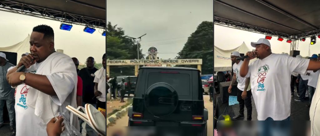 Socialite and entrepreneur Pascal Okechukwu, popularly known as Cubana Chiefpriest, recently visited the Federal Polytechnic Nekede in Owerri, Imo State, accompanied by members of the pro-Tinubu organization, City Boy Movement.