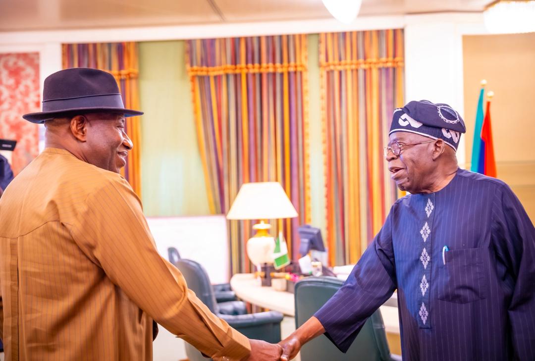 Former President Goodluck Jonathan Jonathan visited President Tinubu in the State House Abuja today, April 22.