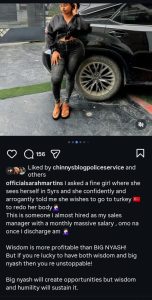 This is someone I almost hired as my sales manager with a massive monthly salary, omo na once I discharge am.