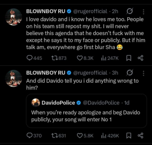Ruger has addressed speculation about his relationship with Davido, following a fan’s post on X that reignited rumors.
