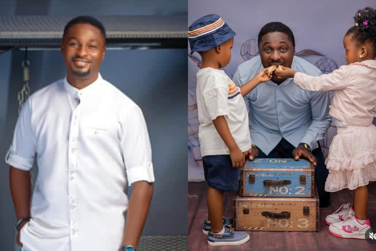 Newsunplug reported hours ago that it is a double celebration for Adeniyi Johnson as he and his twins turn a new age. Sharing a photo of him with his twins, he wished them a happy birthday and expressed gratitude to his Maker.