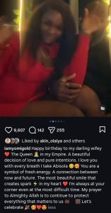 On his Instagram page, he shared clips of his wife, describing her as the queen of his empire. Yomi called their relationship a beautiful decision of love and pure intentions.