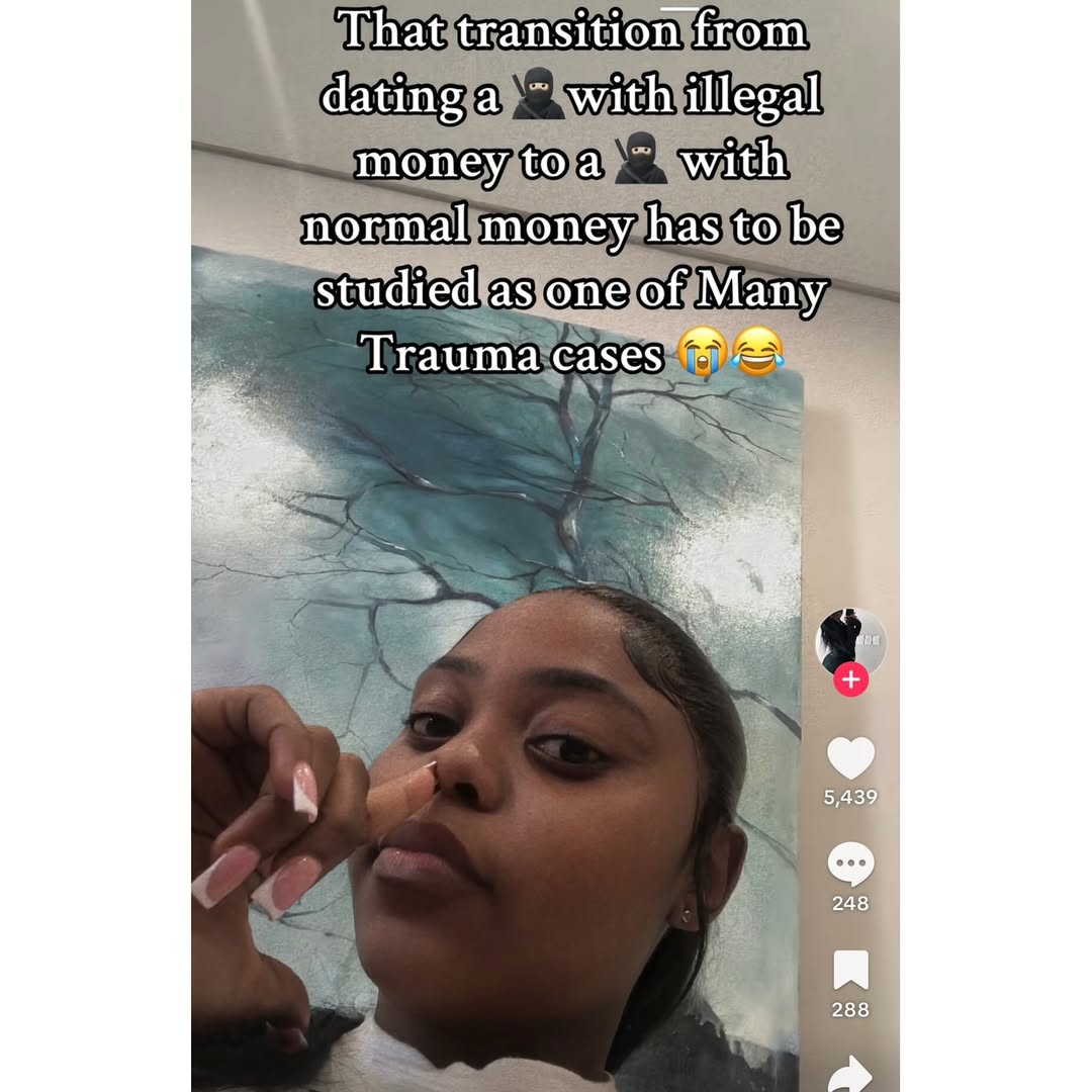 They opened up after a TikToker started the conversation with the caption, “That transition from dating a man with illegal money to a man with normal money has to be studied as one of the many trauma cases.”