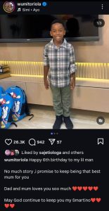 Newsunplug > Blog > Entertainment > “I Will Keep Being The Best Mum For You” – Wumi Toriola Makes Promise To Son As He Turns 6
