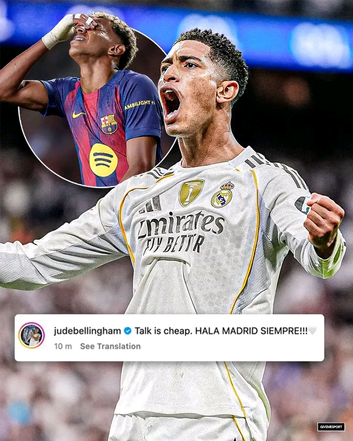 The post immediately went viral, with fans interpreting it as a direct jab at Lamine Yamal’s pre-match comments. Madrid supporters flooded the comments section with praise, while Barcelona fans accused Bellingham of unsportsmanlike behavior. Regardless of interpretation, the post perfectly captured the fiery rivalry that defines El Clásico.