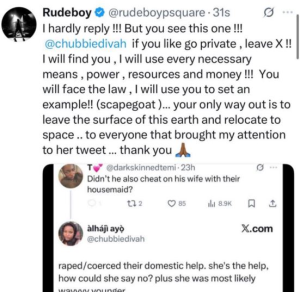 Responding to that comment, @chubbiediva accused Paul of wrongdoing involving the maid and also claimed he sent his wife and sister-in-law out of the house when confronted.
