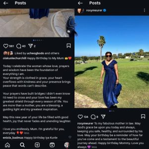 Nigerian businessman Olakunle Churchill and his actress wife, Rosy Meurer, are celebrating his mother’s birthday.
