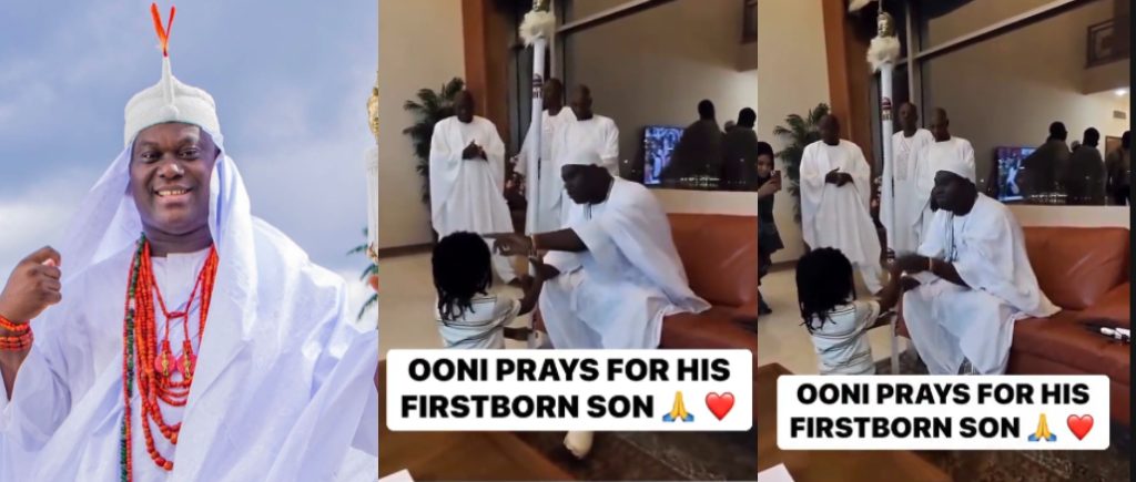 Oba Enitan Adeyeye, the Ooni of Ife, and his first son, Prince Tadenikawo, recently trended online after videos surfaced showing a warm interaction between them.