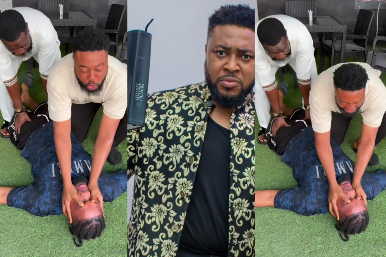 In the wake of Tonto’s deliverance video, the light-skinned actor shared a video of him conducting deliverance on a man as he prayed for every spirit of delay to leave the man’s body.
