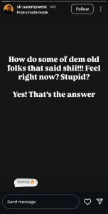 Following the announcement, Sammy West took to his social media story to drop a pointed message. He hinted that certain “old people” who once looked down on Regina should now be feeling embarrassed.