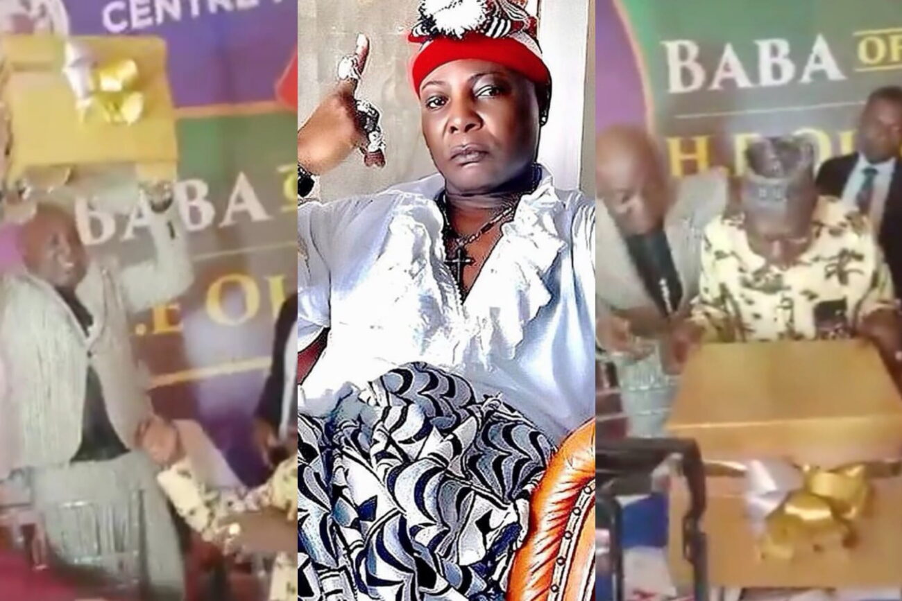 The video captured the moment he presented the box to Obasanjo, who opened it in front of the crowd.