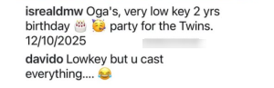 ‘You Cast Everything’- Davido Reacts To Israel Dmw’s Post About Twins’ 2nd Birthday
